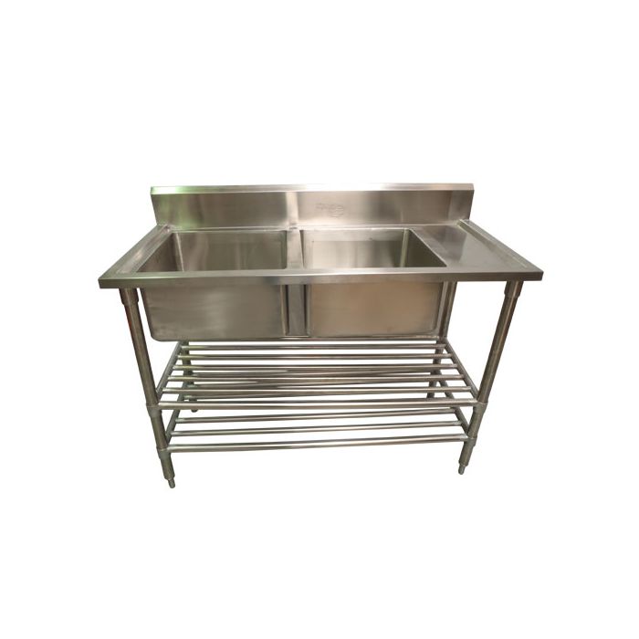 You are purchasing a brand new, top of the range, heavy duty, all stainless steel double bowl sink with 2 extra undershelves. It is simply the best available for all the features it's packed with. This sink has it's bowl on the left side (as pictured). More sizes & models available in stock.