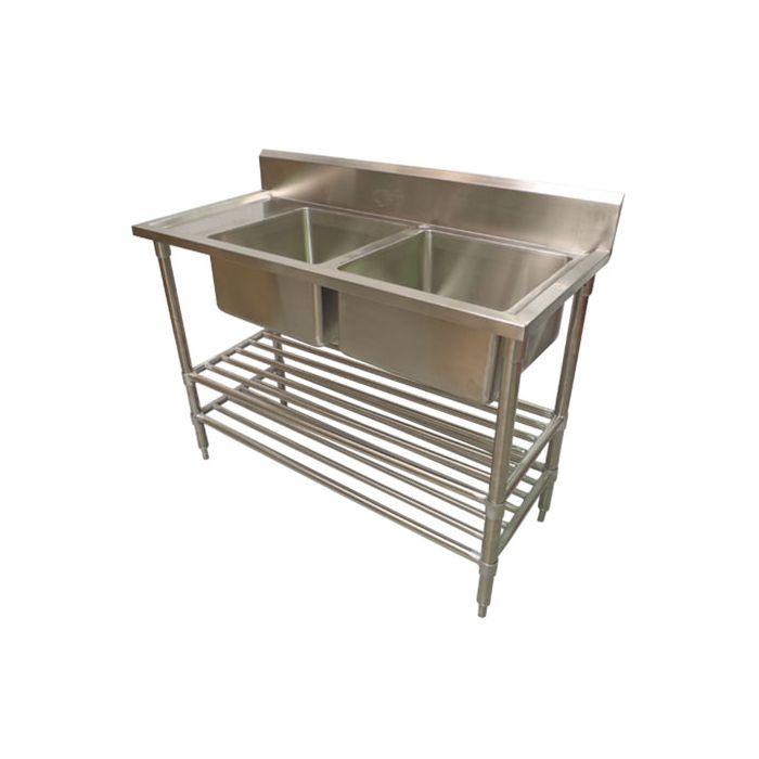 1300 X 600mm Commercial Double Bowl Right Kitchen Sink S/Steel 2Xundershelves