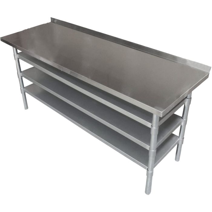 You are purchasing a brand new, top of the range, heavy duty, all stainless steel food grade work bench. It is simply the best available for all the features it's packed with. This table unlike most others being sold comes with 16 screws, each leg is screwed on the upper and lower shelf by two screws. This ensures your table is stable, sturdy, balanced and safe. More sizes & models available in stock.