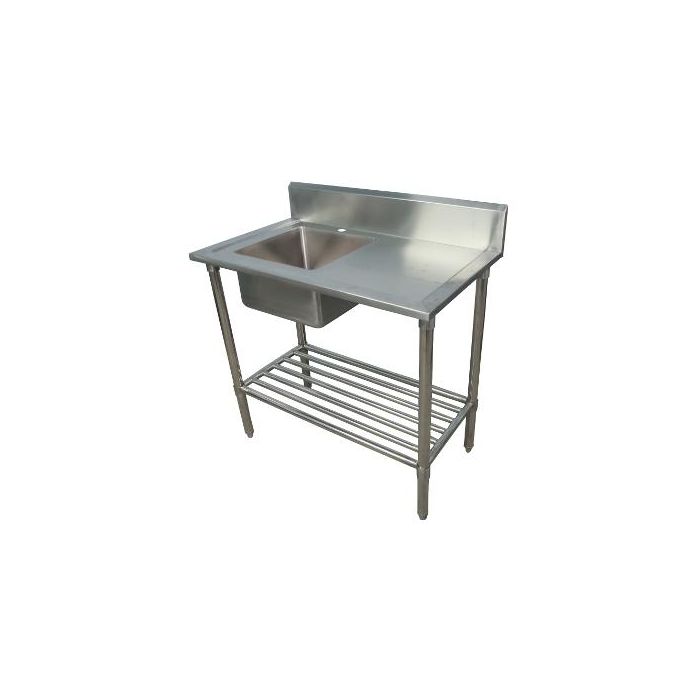 1000X600mm Single Bowl Left Kitchen Sink S/Steel W/ Wheels 1Xundershelves
