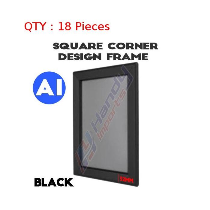YOU ARE PURCHASING 18 PIECES OF NEW A1 Heavy Duty Black Square Corner Snap Frame/Poster Frame/Picture Frame 32mm.