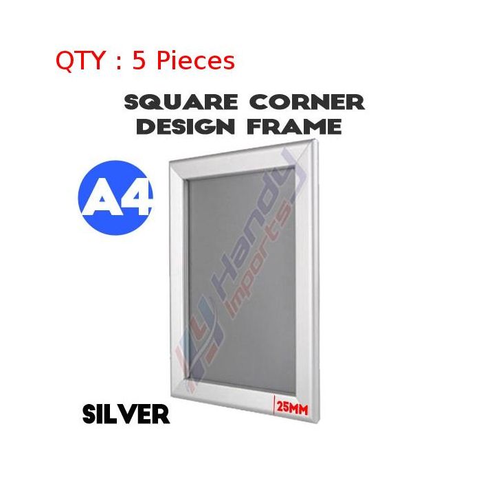YOU ARE PURCHASING 5 PIECES OF Brand New A4 Silver Square Corner Snap Frame/ Poster Frame/ Picture Frame 25mm.