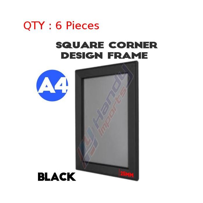 YOU ARE PURCHASING 6 PIECES OF Brand New A4 Black Square Corner Snap Frame/ Poster Frame/ Picture Frame 25mm.