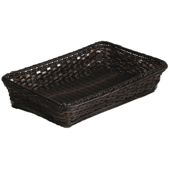 Stackable, polyratten display basket that is ideal for buffet display and front of house use.
