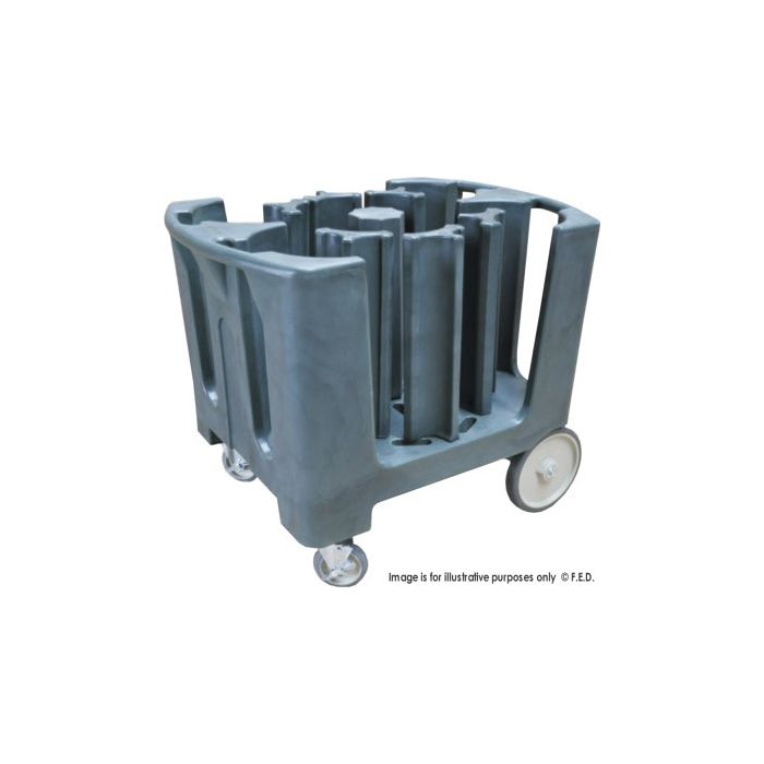 Adjustable Dish Caddie - CPWK200-23 • Adjustable plate carries • will hold plates from 11.5 to 33 cm • 150 kg load • handles both sides • single mould injection • no assembly required • swivel front castors with brake Made from high quality long-life Food Grade Polyethylene (PE)