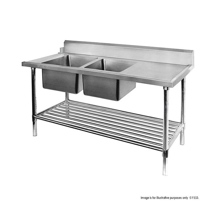 All Stainless Steel Left Inlet Double Sink Dishwasher Inlet Bench - DSBD7-1800L