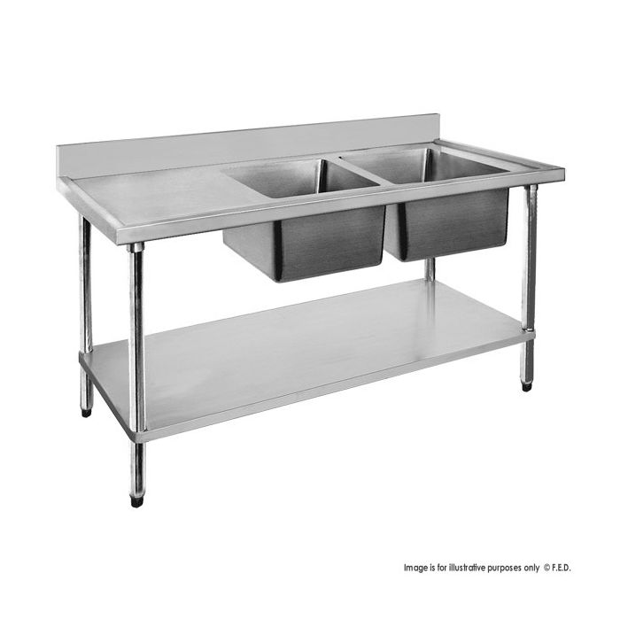 Fed Economic 304 Grade Stainless Steel Double Sink Benches 700mm Deep 1800-7-DSBR