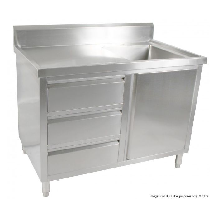 ALL STAINLESS STEEL KITCHEN TIDY CABINET WITH SINK, DOORS & DRAWERS