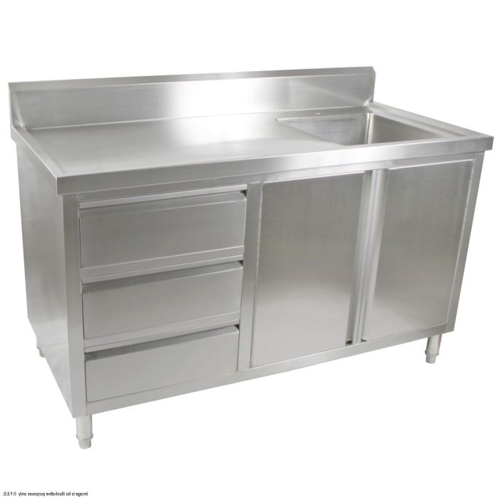 ALL STAINLESS STEEL KITCHEN TIDY CABINET WITH SINK, DOORS & DRAWERS