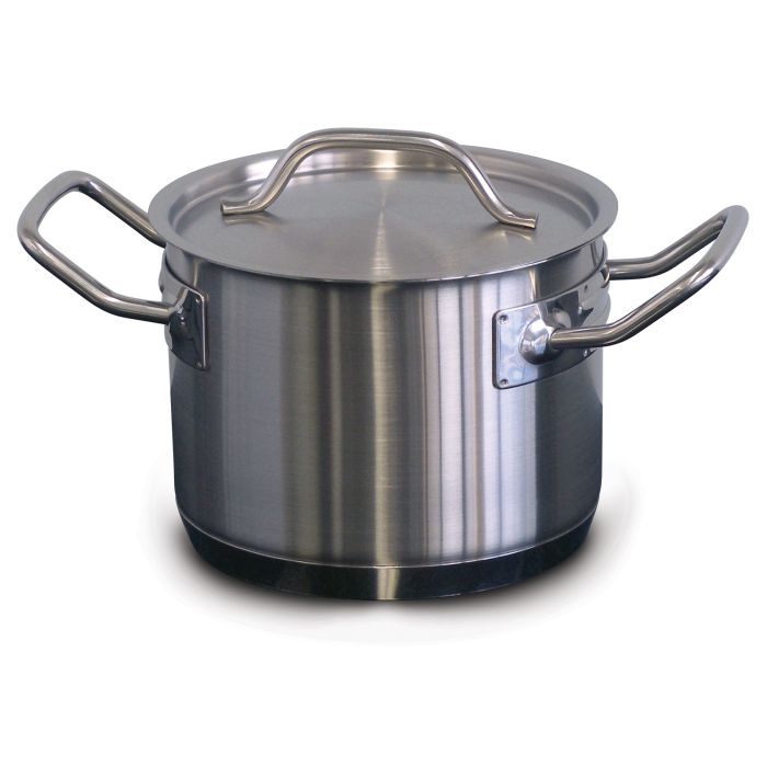 Designed for professional cooking, heat diffusing heavy duty bases, satin finish, suitable for use with gas, electric, ceramic, induction and dishwasher.2.4Lt