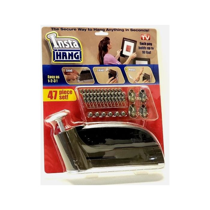 You are purchasing a Brand New Insta Hang Instant Hanging Wall Peg Hook Machine Tool. This revolutionary machine tool that lets you install wall pegs easily without the use of a hammer. Hang beautiful pictures with thte help of Insta Hang!
