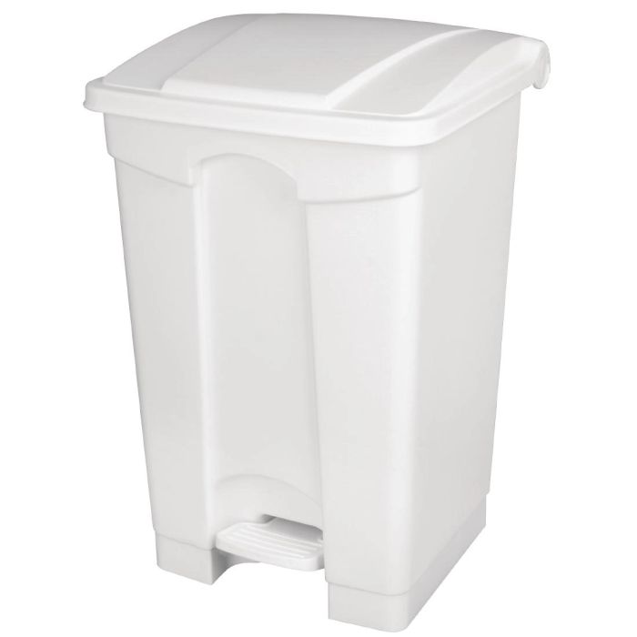 The white Jantex step on bin features a pedal operation which helps staff to avoid using their hands when opening it, minimising the risk of cross contamination. The bin also benefits from a 45 litre capacity, a tough polypropylene construction and tight fitting lid to keep odours contained. Practical and highly durable, this hygienic bin is ideal for use in kitchen areas within a wide range of catering environments.