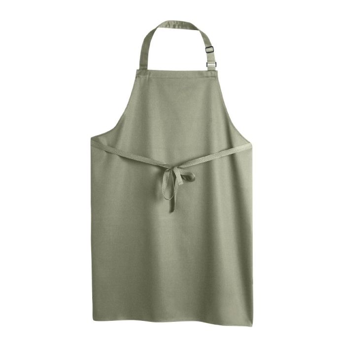 With its attractive sage green colouring and crease resistant design, this 100% polyester bib apron is easy to maintain and does not shed fibres, guaranteeing that your staff look fantastic and are protected from the inevitable mess of a busy kitchen. Durable and hardwearing, this apron is bleach resistant and was designed by industry professionals to save you money in the long term.