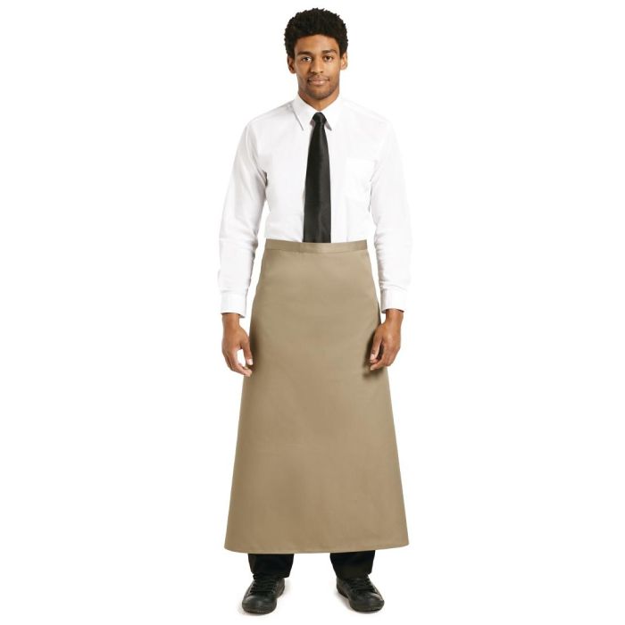 This stylish and neutral olive coloured apron will match your current decor adding a modern touch. The hardwearing polycotton material is incredibly practical ensuring durability and longevity. Featuring a convenient pocket and matching sewn in ties for quick accessibility to items such as thermometers. This is the ideal simple apron for any waiter or waitress.