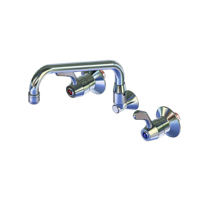 - Wall mount sink set, 300mm Swing Aerated spout, with 1/4 turn levers, ceramic disc.