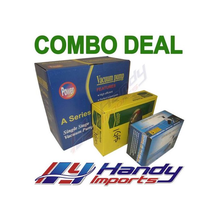 You are purchasing a brand new, in box, absolute quality 4CFM single stage vacuum pump + off center pipe flaring tool + 2-way manifold/gauge.