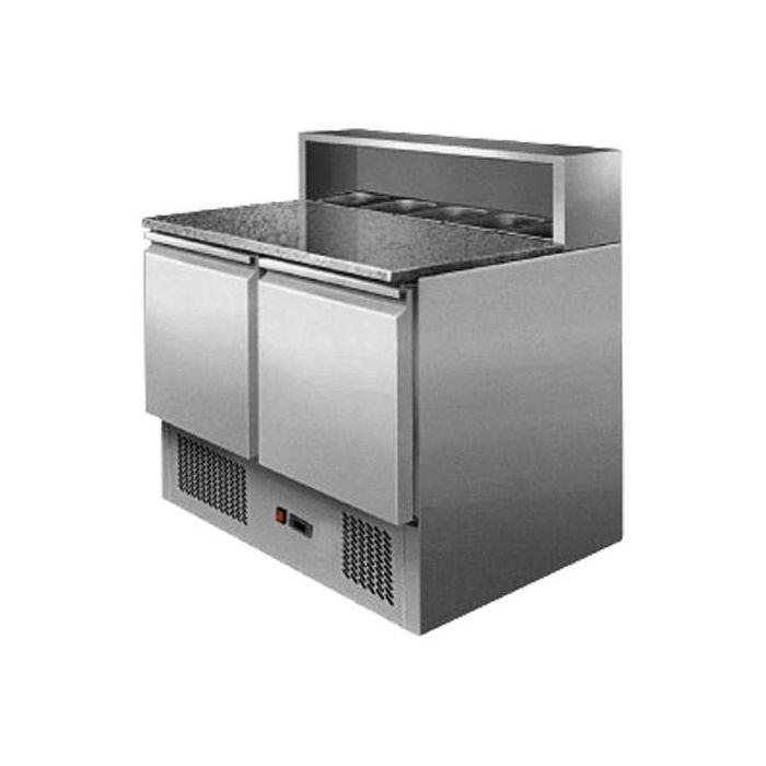 You are purchasing a brand new, top of the range, heavy duty free standing saladette, this salad fridge is constructed of the best food grade stainless steel #304 and has a natural marble top, also features a digital temperature control. Temperature range is 2 to 10 degrees and has automatic defrosting. This unit comes with 5pcs food grade stainless steel containers and their lids (5 x 1/6GN). Containers are 65mm deep, you can upgrade to a 100mm or 150mm depth: