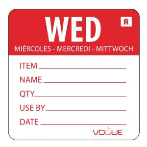 These food safety labels are colour coded to correspond with your day-of-the-week rotation system. Options for front and back of house so you can quickly identify when food was prepared to help minimise food waste.