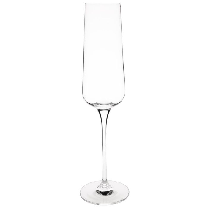 From Olympia, this angular champagne flute is a sophisticated way to drink fizz. In a modern angular design, this glass brings a stylish update to a classic shape flute, ideal for all types of parties and occasions. Crafted from one piece lead-free crystal, this flute is strong, durable and has plenty of clarity, wash after wash. The bowl and stem are tall and thin, presenting an elegant design to you and your customer. The narrow bowl is most suitable for dry champagnes and sparkling wines as it is able to preserve a lot of the bubbles.