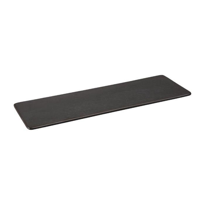 This long, slender platter from Olympia¿s Fusion range is the ultimate in modern food presentation. Combining a memorable matt black finish with a uniquely uninterrupted, flat presentation surface, these plates allow you to create visually memorable starters and desserts. Perfect for creating trios or sharing platters, these plates are suitable for use in the dishwasher, oven and microwave.