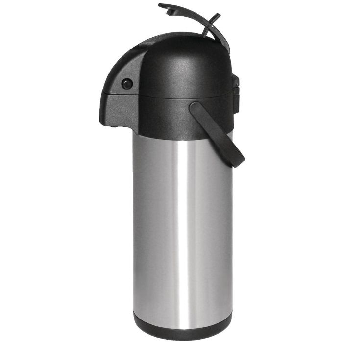 Double wall stainless steel lever action airpot with removable lid and wide neck for easy cleaning.