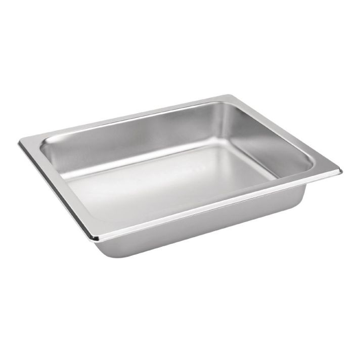 Having spares for your chafing dish is always handy, especially when you have multiple recipes prepared to switch over at any time. For use with the Olympia 1/2 sized chafing dish (CN607), this food pan has a capacity of 3.7 litres, making it ideal for smaller quantities of food, keeping waste levels low. Made from 304 stainless steel for sturdiness and reliability.
