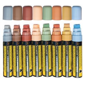 These all weather, wet erase liquid chalk markers are suitable for use on glass, metal, chalkboards, pavement boards and other non-porous surfaces. Available in a wide variety of colours and nib sizes with a choice of chiselled or square tips.