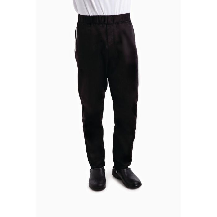 Complete with three pockets for practical storage of all your kitchen essentials, from thermometers to pens to keys, every chef needs a pair of these black utility trousers. An elasticated waist gives you a snug and comforting fit, as well as giving you the freedom to move and work without restriction, making them perfect for busy kitchen staff in any commercial kitchen.