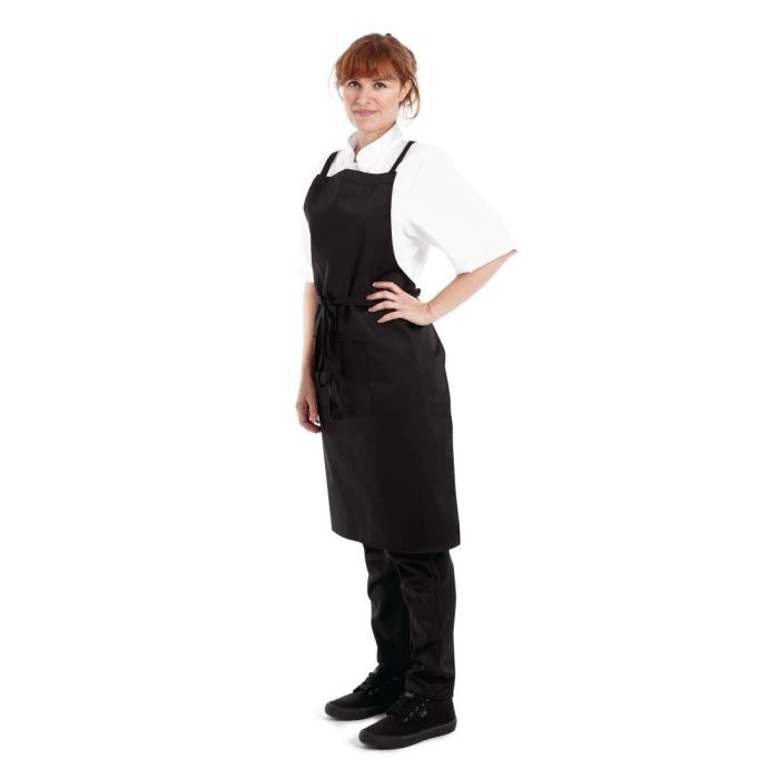 Find a new style for your uniform with this x-cross back bib apron from Whites. The unique over-the-shoulder ties help you to get an extremely comfortable and secure fit for control and comfort through every shift. Made from a durable polycotton, the bib apron will protect your clothes day after day, through busy shifts in demanding kitchens and food preparation areas. Double front pockets give you practical storage space for essentials like notepads, pens, keys and more, ensuring you always have your things to hand. Complete with a black design and unique cross-back ties, this Southside bib apron is perfect for any chef or kitchen staff member.