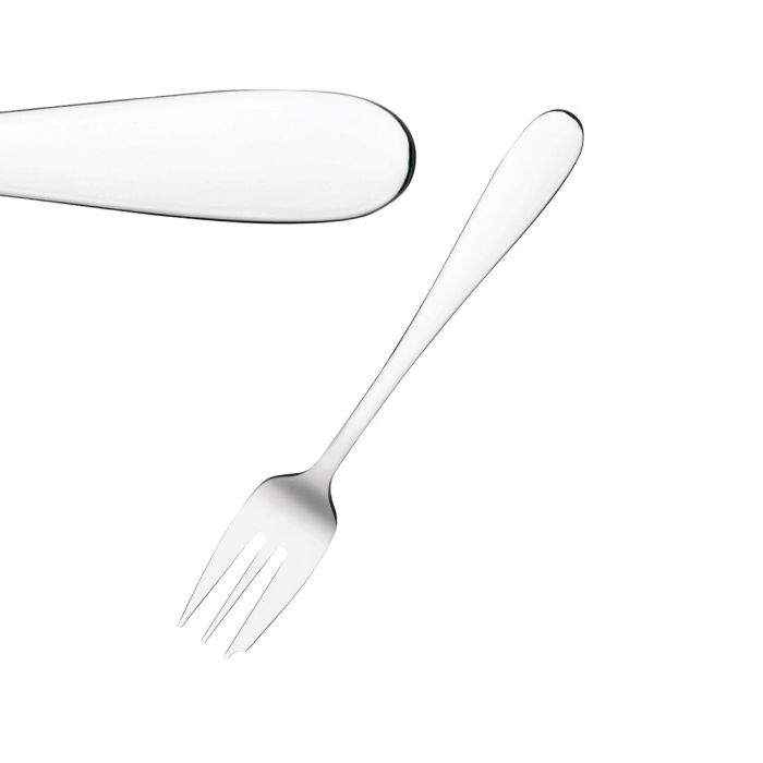The perfect cutlery to serve with your delicious cakes. These Olympia Buckingham cake forks are designed with a thicker left-hand tine which is perfect for cutting into a slice of cake or pastries. Each fork is shaped with a crescent indent, making it a practical yet stylish addition for any cafe or coffee shop. Highly polished with teardrop-shaped handles, these elegant forks will suit any table setting.
