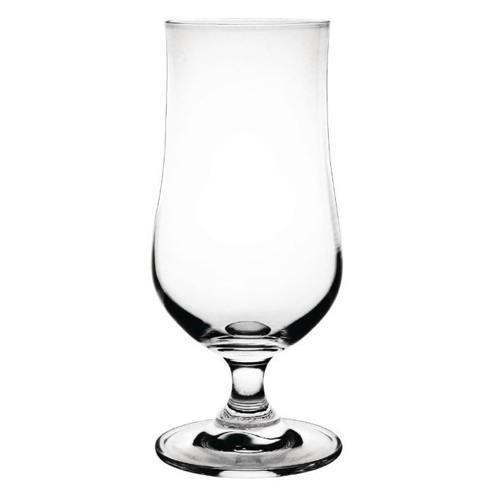 Serve a Hurricane with the true feel of New Orleans with Olympia's crystal hurricane glasses. Although these glasses were originally designed to serve the Hurricane cocktail, the eye-catching design lends itself to other drinks, such as frozen cocktails or a Piña Colada. After use, it is safe to put this crystal glass in the glass washer.