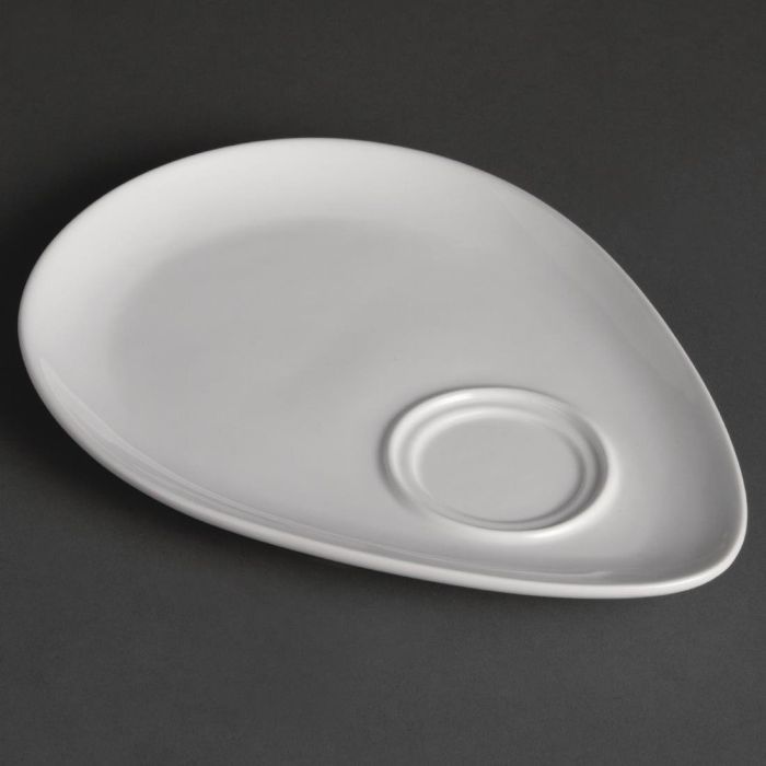 Serve a slice of cake with your tea or coffee by using these snack plates from the Olympia Whiteware collection. The stylish teardrop shape provides plenty of room for a snack alongside your cup, which is stopped from sliding by a raised circular rim - this also prevents drips and dribbles from reaching the food.