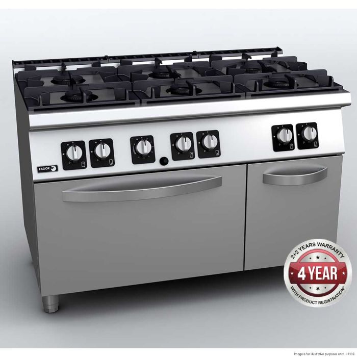 - Six burners on the worktop with different powers, enabling the use of different pots and pans and different foods: 6 x 8,0 kW (Ø 120 mm).