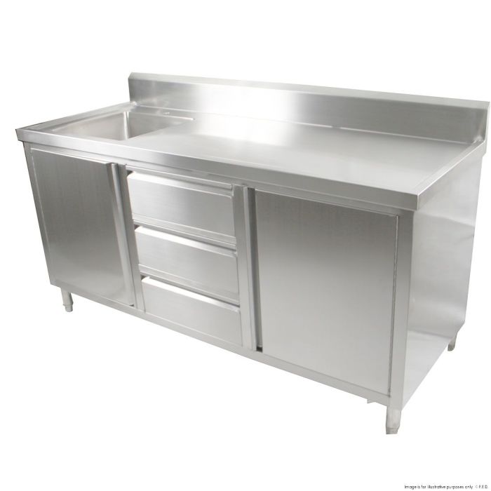 - ALL STAINLESS STEEL KITCHEN TIDY CABINET WITH SINK, DOORS & DRAWERS