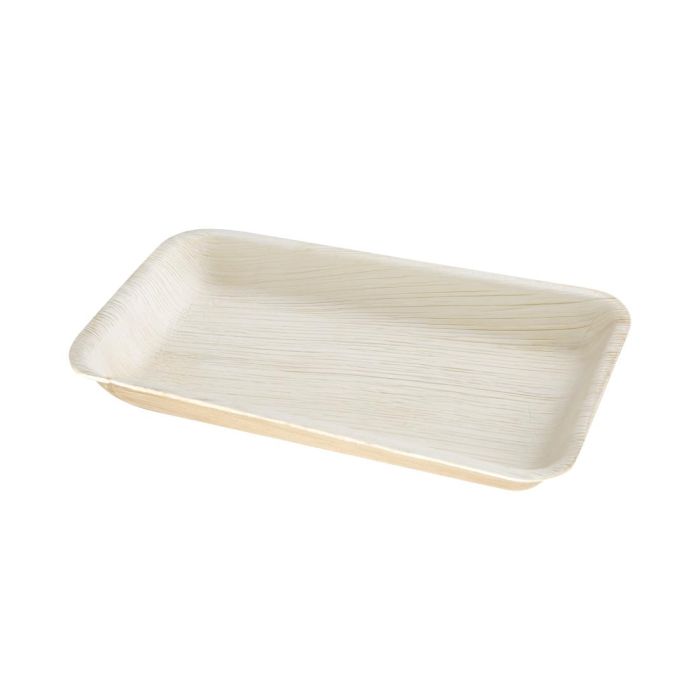 Enhance the natural and rustic look of your dishes while helping the environment with these 250mm biodegradable palm leaf plates from Fiesta Green. Each of the rectangular plates in this pack of 100 has its own unique look, and offers a greener alternative to traditional plastic disposable tableware.