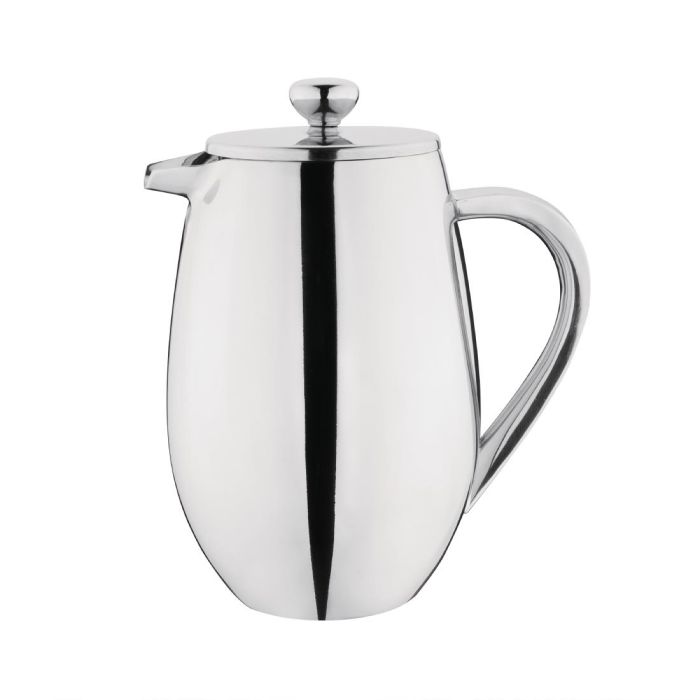 Modern and attractive with an impressive mirror finish, use this stainless steel coffee plunger from Olympia to brew and serve delicious hot coffee in style at your customer's table. With its 750ml capacity, this large cafetiere will comfortably pour up to six cups of coffee and is perfect for use in any catering environment from morning breakfast service to after-dinner drinks in premium restaurants or hotels.