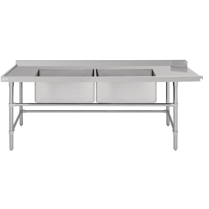 Vogue Dishwasher Inlet Table with Double Bowl Sink 90mm outlet 2400x700x960mmL/H DE475