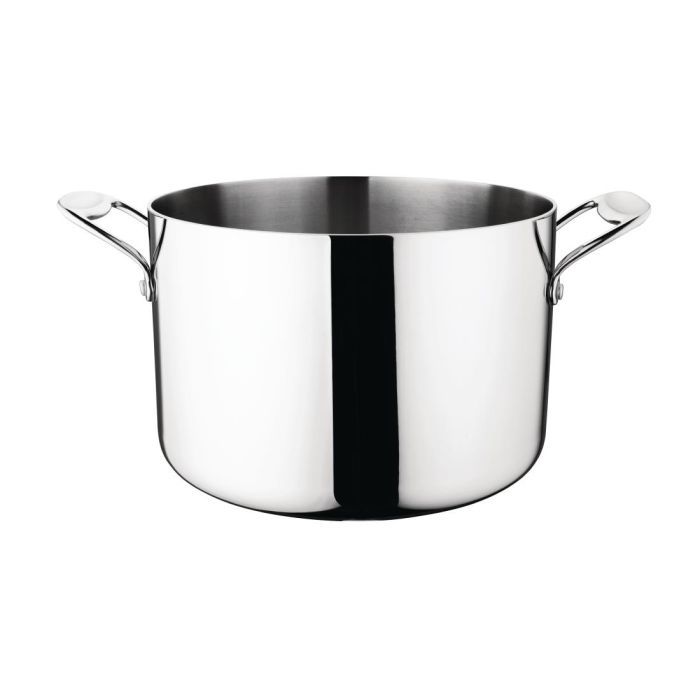 Made to last in busy commercial kitchens, this strong and robust pan is suitable for induction cooking and any other surface. Two side handles remain cool to touch at all times, so moving or carrying the stew pan when full is easy too. Versatile, durable and reliable - this stew pan won't let you down.