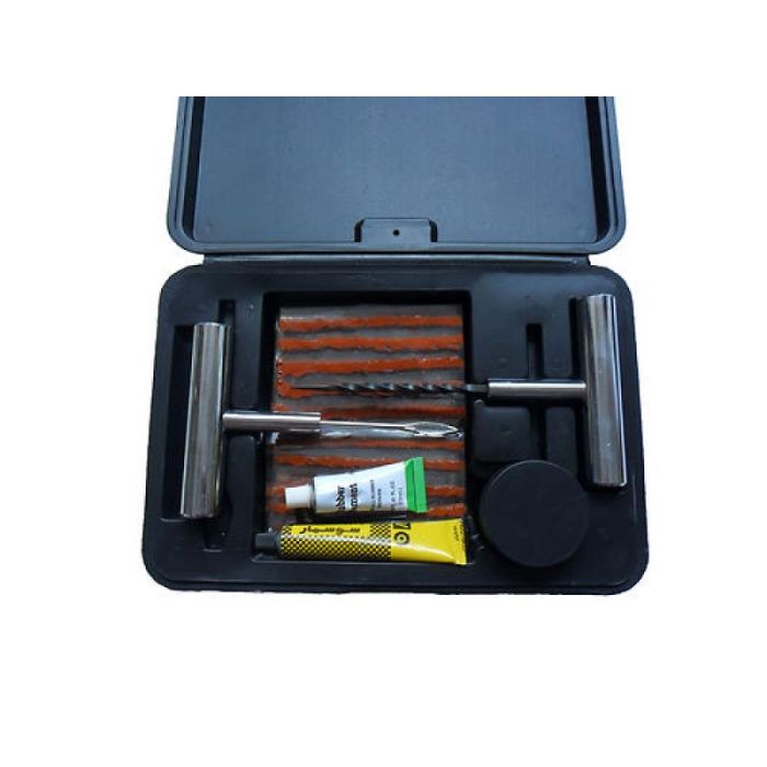You are purchasing a brand new 36pcs "tubeless tire repair tool kit". This kit is the largest on eBay and will last you years. Includes 30pcs plugs, 2pcs glue tubes, 2pcs T-handles, 1pcs lubricant and plastic mold carry case.