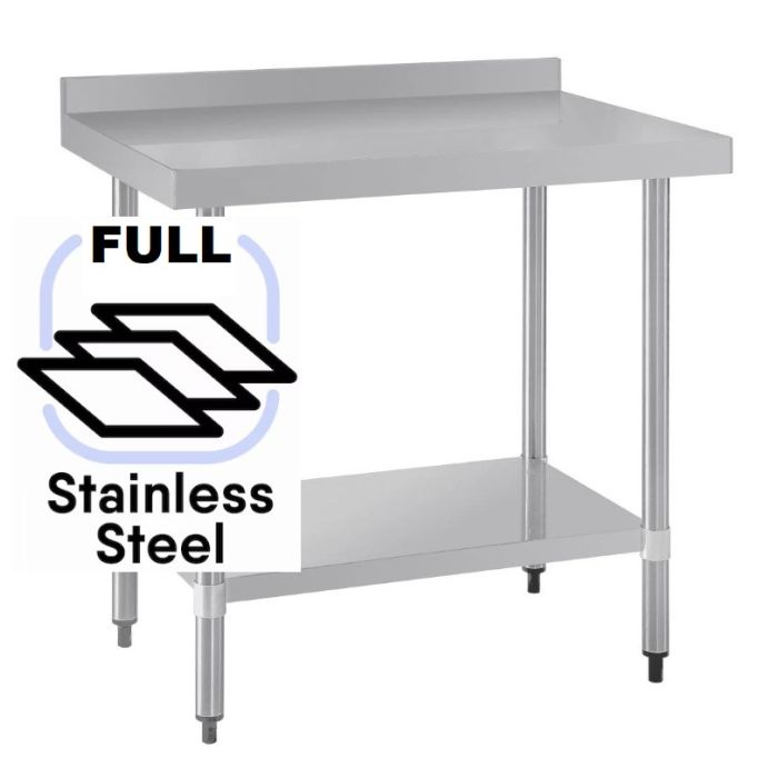 1000x600 Commercial FULL Stainless Steel Table Food Grade Work Splashback Bench 1000-6-WBBS HY