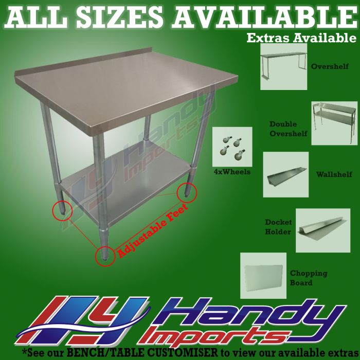 You are purchasing a brand new, top of the range, heavy duty, all stainless steel work bench. It is simply the best available for all the features it's packed with. This table unlike most others being sold comes with 16 screws, each leg is screwed on the upper and lower shelf by two screws. This ensures your table is stable, sturdy, balanced and safe. More sizes & models available in stock.