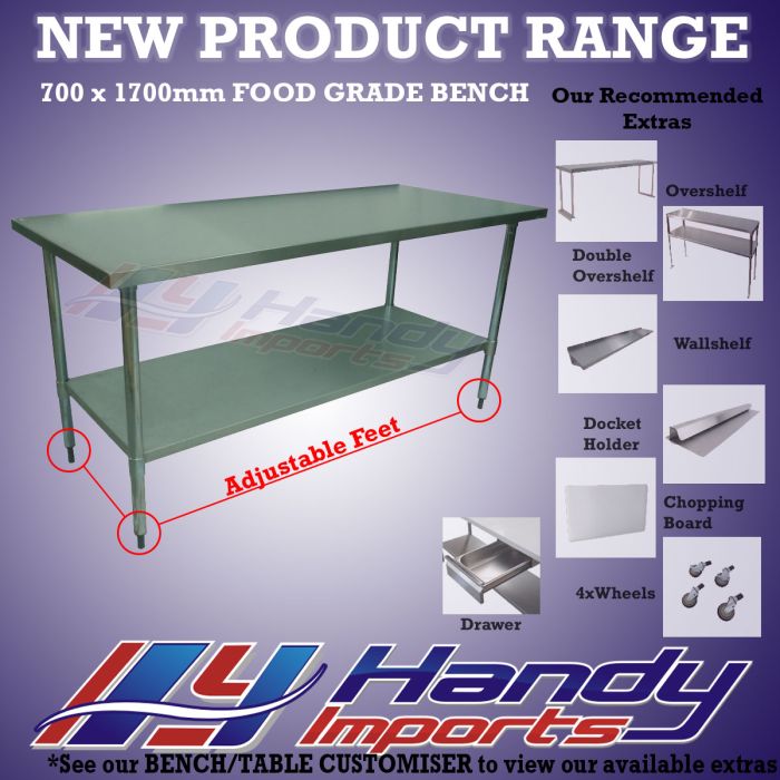 1800 X 700mm Stainless Steel #304 Bench
