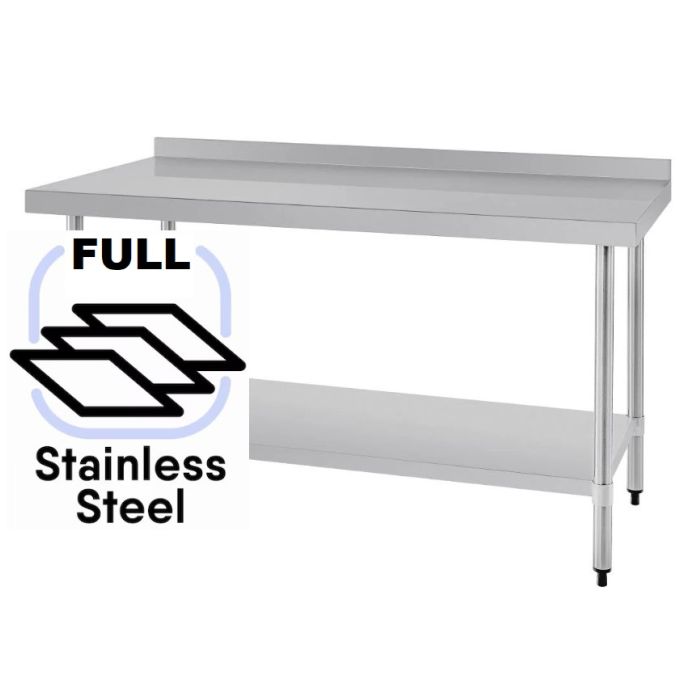 1500x800 Commercial FULL Stainless Steel Table Food Grade Work Splashback Bench 1500-8-WBBS HY