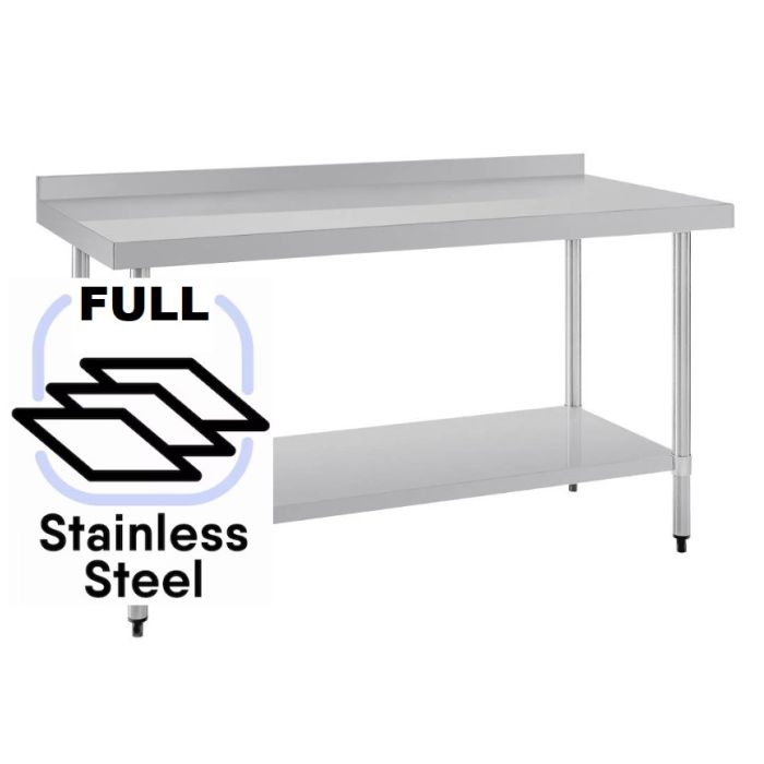 1500x700 Commercial FULL Stainless Steel Table Food Grade Work Splashback Bench 1500-7-WBBS HY