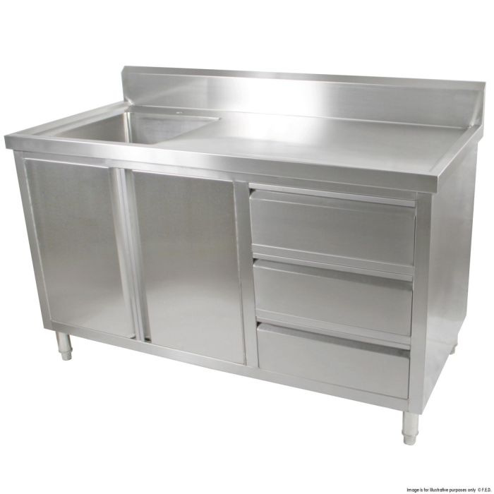ALL STAINLESS STEEL KITCHEN TIDY CABINET WITH SINK, DOORS & DRAWERS