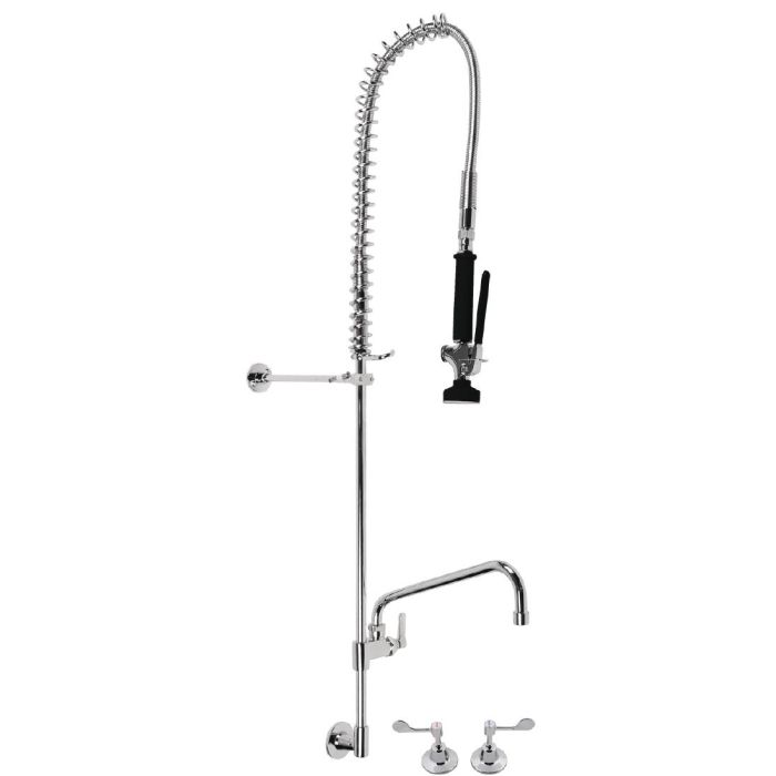 Designed to be reliable and incredibly water efficient, the pre rinse unit from 3monkeez is easy to use and clean, thanks to having part of the mechanism hidden away behind the durable lever action controls. Manufactured with Watermark and WELS approval in mind, the self-closing trigger valve ensures that water in only dispensed when required. Easy to assemble and comes complete with 12in pot filler and attractive black handle.