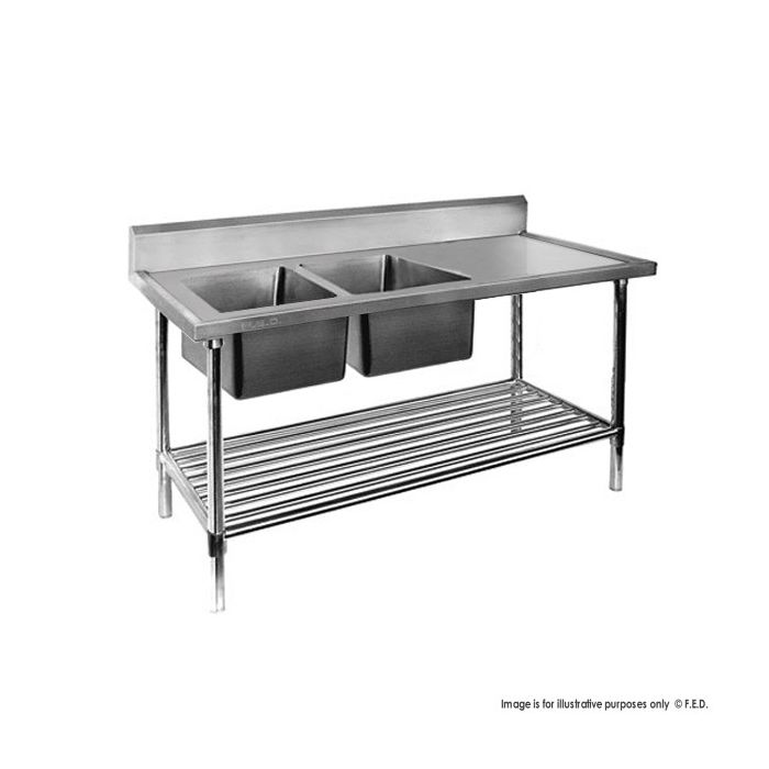 All Stainless Steel Double Left Sink Bench with Pot Undershelf - DSB7-2400L/A