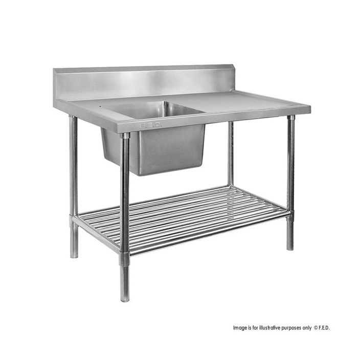 All Stainless Steel Single Left Sink Bench with Pot Undershelf - SSB6-1800L/A