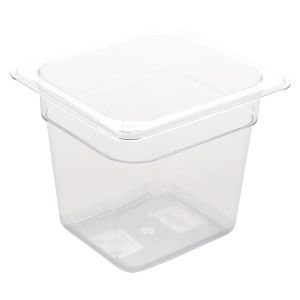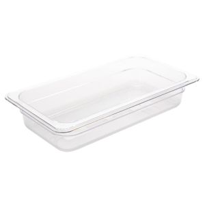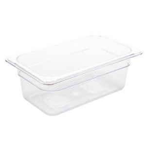 These virtually unbreakable polycarbonate pans from Vogue remain cool to the touch for efficient handling. Both lids and containers are dishwasher safe. Lightweight and stackable.