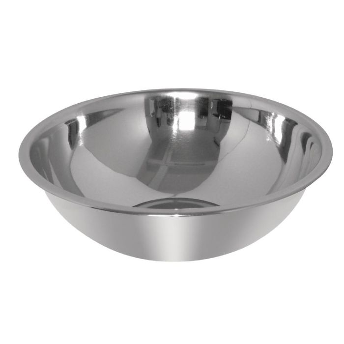 This large mixing bowl from Vogue is made from stainless steel for immense durability, and features a flat bottom for a more stable operation. This bowl is also stackable, allowing for easy storage.
